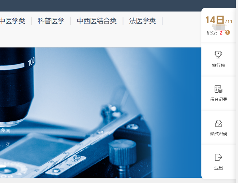 3.学校IP范围内,保持账号登录状态,页面右侧会显⽰个人信息栏。此时每观看—个视频,会自动累积1分。读者们可以点击按钮查看排行榜、积分记录。