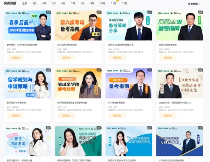直播讲师均为新东方资深教师,兼具教学与命题研究经验;所有直播3小时内生成高清回放,支持进度定位与倍速播放,方便考生反复学习重点。