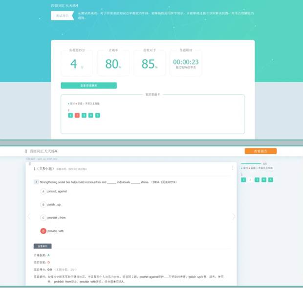 还原真实考场环境,帮助考生提前适应答题节奏,答题后自动生成个性化报告,标注正确率较低的题型与高频错误知识点,清晰呈现薄弱环节,为针对性补弱提供方向。