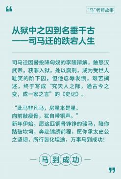 选取五位名字中含“马”或与马相关的中国古代名人,以一个简短的故事来讲述其生平,并分别引出一个马年祝福。
