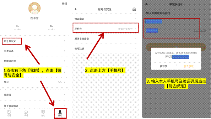 如在此之前已注册并掌阅精选书城,参考新用户注册操作,使用学号+默认密码注册登录,绑定手机号时填写之前注册的手机号,系统会弹出提示询问是否合并账号,请选择【是】。