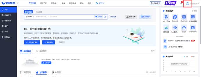 关联成功后,即可免费使用知网研学网页端(网址:x.cnki.net)、手机端(知网研学APP和小程序)和桌面端 知网研学(原E-Study)。