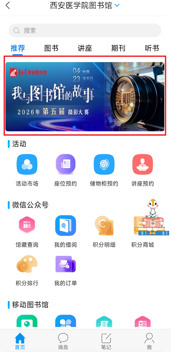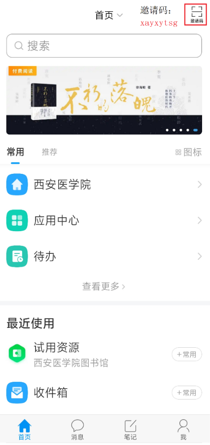 扫描下方二维码,登录超星学习通APP端(首页右上角输入邀请码:xayxytsg)或超星移动图书馆小程序端,通过首页上方轮播图点击投稿。凡参与活动的读者均可获得图书馆积分,积分可用于抵扣超期逾期费用或兑换精美奖品,详情请见《西安医学院图书馆积分管理办法(2024修订版)》。