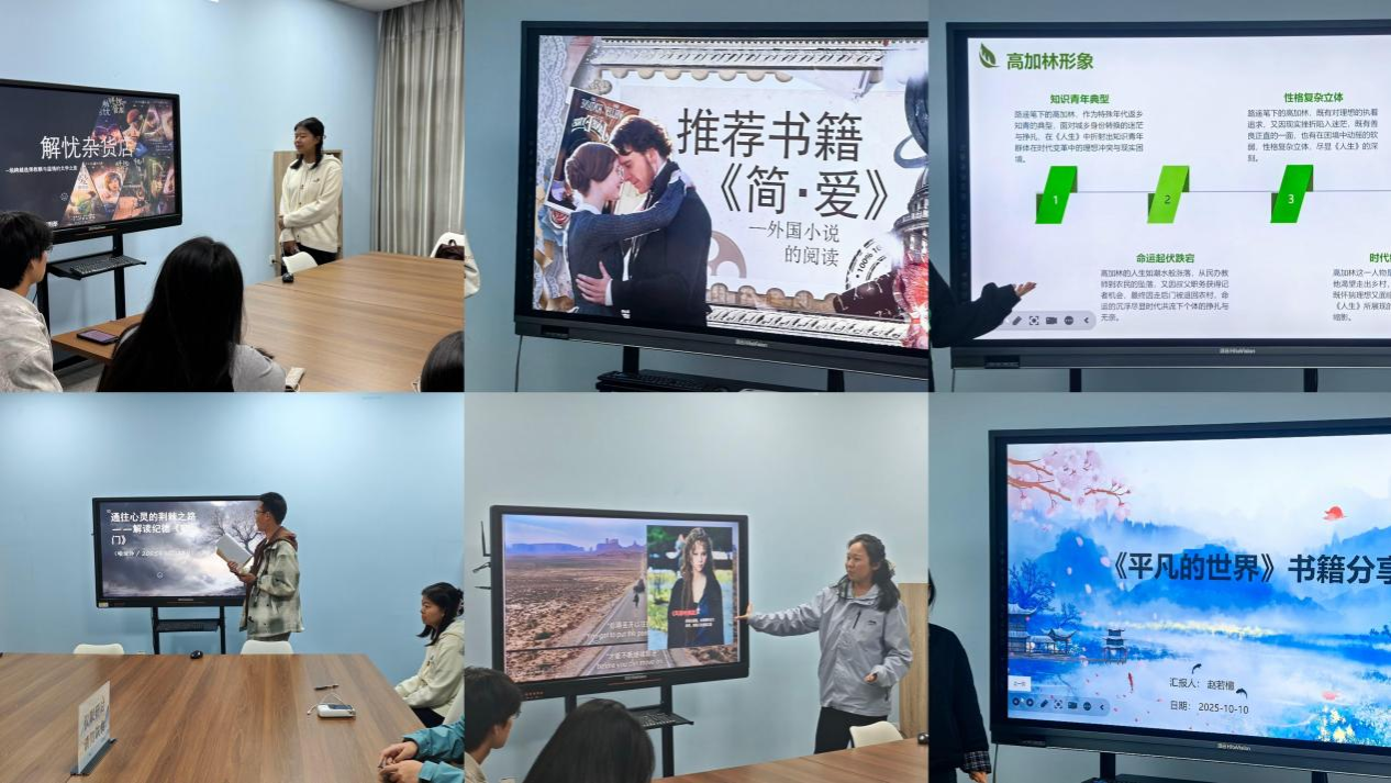 分享会现场,同学们以书为梯对话伟人,围绕经典热烈探讨:读《活着》为福贵“活着本身就是意义”红了眼,悟“苦难是学会珍惜的礼物”;读《窄门》懂接受不完美的温柔;读《平凡的世界》叹普通人的不凡,信“平凡日子能开花”;读《简・爱》为“灵魂平等”热血,汲取精神独立力量;读《杨绛传》品百年优雅;读《疯人说》鸣共情需放下偏见。研讨室里,年轻的声音交织成网,传递书本温度。