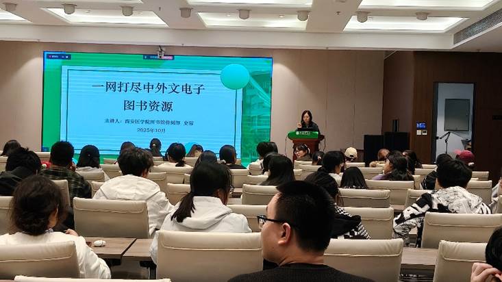 在数字化阅读日益普及的今天,高效利用电子图书资源已成为拓展知识视野、助力学术科研的必备技能。为帮助师生解锁图书馆的“云端”宝藏,10月15日晚,医圖讲堂系列培训讲座由学科馆员史蓉老师主讲,为大家带来了一场题为《一网打尽中外文电子图书资源》的实用指南,吸引了150余名师生到场学习。本次讲座直击师生在查找和利用电子图书时的痛点,旨在打破资源壁垒,让海量数字藏书“触手可及”。史蓉老师以专业的视角和清晰的讲解,带领大家系统掌握了从精准定位到高效获取电子图书的全流程。