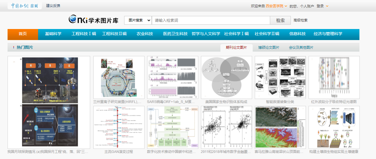 CNKI学术图片知识库是知网通过挖掘整合学术类图片而形成的知识库,从各类学术文献中提取出千万量级的图形、图像等内容,加以规范化编辑整理,提供相似图表的检索、对比和分析功能等知识发现功能。主要包括中国学术期刊(网络版)、中国优秀硕士学位论文全文数据库、中国博士学位论文全文数据库、中国重要会议论文全文数据库、中国工具书网络出版总库、中国年鉴网络出版总库。图片知识库是通过对上述资源的分析,挑选其中最有价值的学术类图片整合而成的知识库,现有图片1亿余张,预计2023之后每年新增图片1000万余张。我校订购了医药卫生科技专辑内容。
