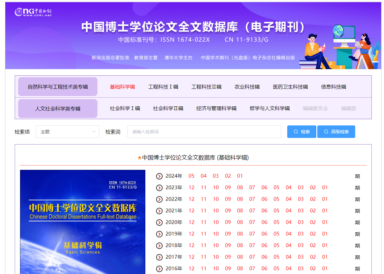 《中国博士学位论文全文数据库》是国内内容全面、质量上乘、数据规范、出版迅速、实用便捷的博士学位论文全文数据库。覆盖基础科学、工程技术、农业、医学、哲学、人文、社会科学等各个领域。目前,收录来自530余家培养单位的博士学位论文(涉及国家保密的论文除外)。收录全国985、211工程等重点高校,中国科学院、社会科学院等研究院所的博士学位论文。论文收录最早回溯至1984年。我校订购了医药卫生、社会科学Ⅰ、社会科学Ⅱ以及部分基础学科内容。